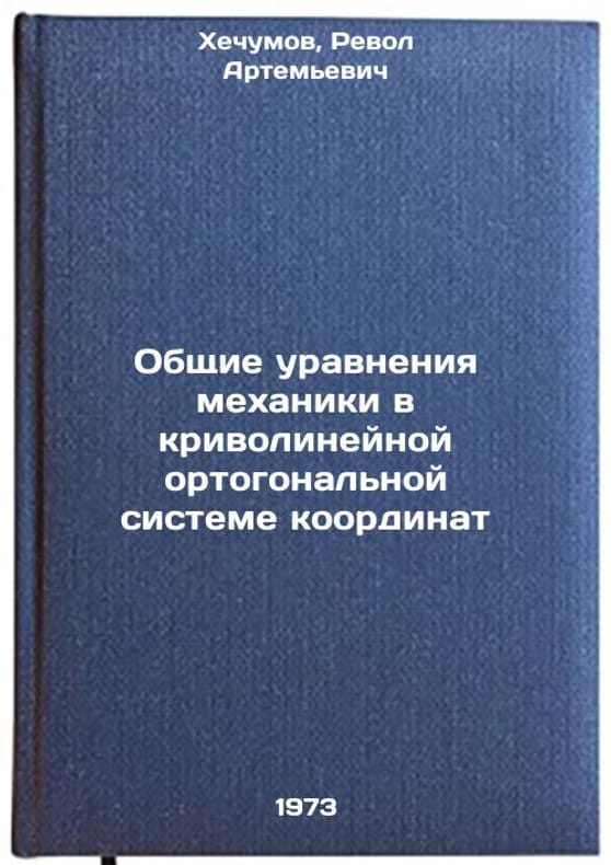 In Russian. Khechumov, Revol Artemievich. General equations of mechanics in curvilinear orthogonal coordinate system. Moscow: 1973. Obshchie uravneniya mekhaniki v krivolineynoy ortogonalnoy sisteme koordinat. In Russian/General equations of mechanics in a curvilinear orthogonal coordinate system. All images are for identification of editions only. Several books of the same edition may be available. Please feel free to request photos of available books. SKU7053686