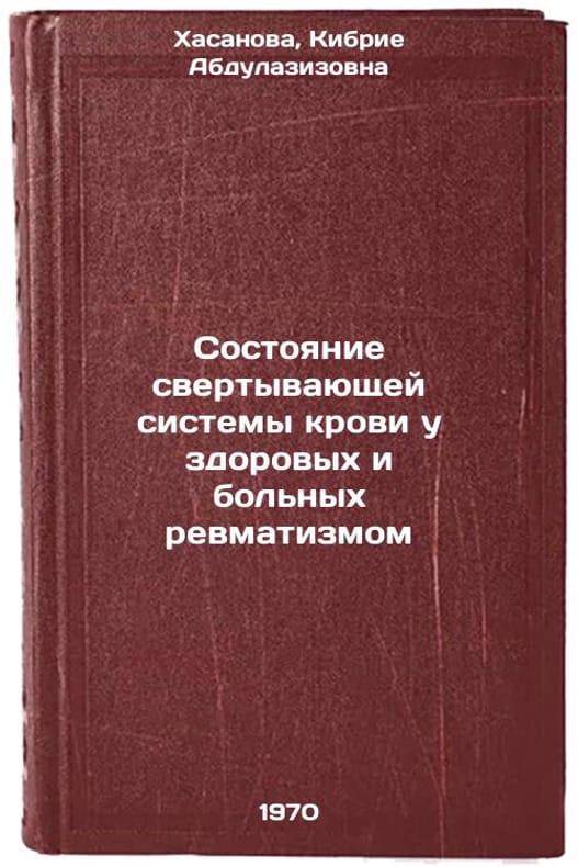 "Short description: In Russian. Khasanova, Kibriye Abdulazizovna. Condition of blood clotting in healthy and rheumatic patients. Dushanbe: 1970. Sostoyanie svertyvayushchey sistemy krovi u zdorovykh i bol'nykh revmatizmom. In Russian /Condition of blood clotting in healthy and rheumatic patients . All images are for identification of editions only. Several books of the same edition may be available. Please feel free to request photos of available books. SKU7054146"