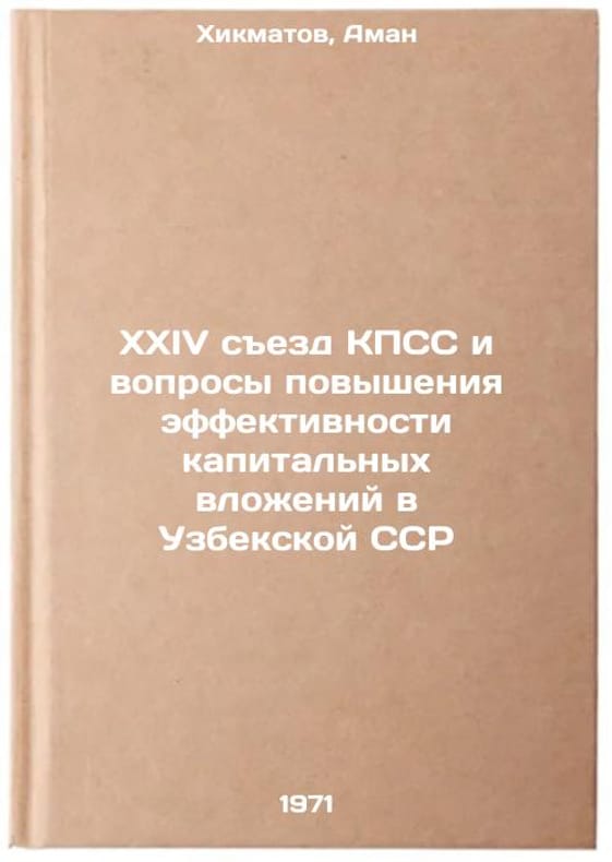 In Russian. Khikmatov, Aman. XXIV Congress of the CPSU and issues of increasing the efficiency of capital investments in the Uzbek SSR. Tashkent: Uzbekistan, 1971. XXIV sezd KPSS i voprosy povysheniya effektivnosti kapital'nykh vlozheniy v Uzbekskoy SSR. In Russian /XXIV Congress of the CPSU and issues of increasing the efficiency of capital investments in the Uzbek SSR . All images are for identification of editions only. Several books of the same edition may be available. Please feel free to request photos of available books. SKU7054897