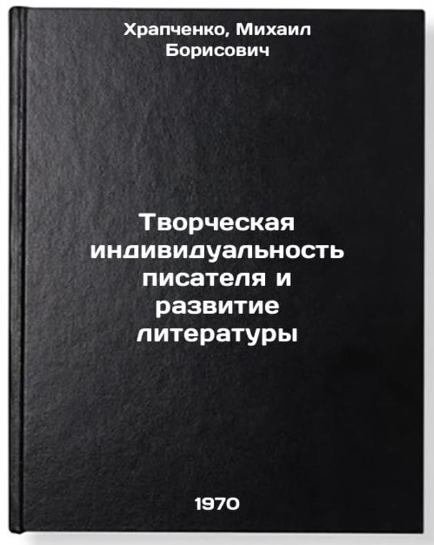 In Russian. Khrapchenko, Mikhail Borisovich. Creative individuality of a writer and development of literature. Moscow: Soviet writer, 1970. Tvorcheskaya individual'nost' pisatelya i razvitie literatury. In Russian /The Creative Identity of a Novelist and the Development of Literature . All images are for identification of editions only. Several books of the same edition may be available. Please feel free to request photos of available books. SKU7057601