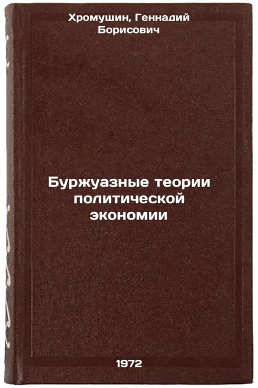 In Russian. Khromushin, Gennady Borisovich. Bourgeois Theories of Political Economy. Moscow: Politizdat, 1972. Burzhuaznye teorii politicheskoy ekonomii. In Russian/Bourgeois Theories of Political Economy. All images are for identification of editions only. Several books of the same edition may be available. Please feel free to request photos of available books. SKU7057805