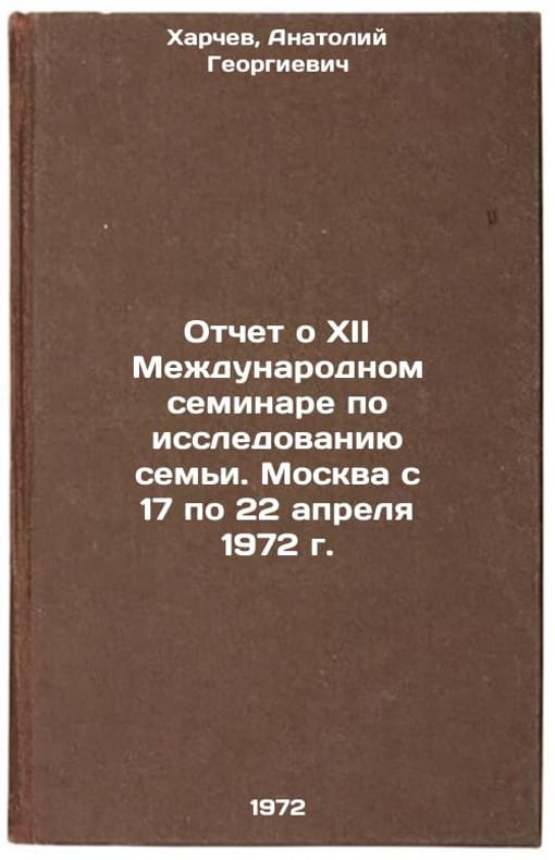 In Russian. Kharchev, Anatoly Georgievich. Report on the XII International Seminar on Family Research. Moscow from 17 to 22 April 1972. Moscow: VINITI, 1972. Otchet o XII Mezhdunarodnom seminare po issledovaniyu semi. Moskva s 17 po 22 aprelya 1972 g. In Russian/Report of the XII International Seminar on Family Research. Moscow, April 17-22, 1972. All images are for identification of editions only. Several books of the same edition may be available. Please feel free to request photos of available books. SKU7058227