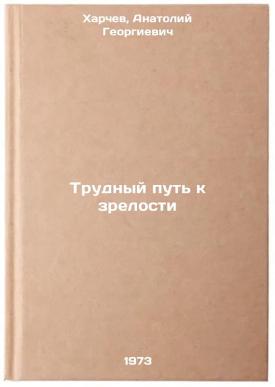 In Russian. Kharchev, Anatoly Georgievich. The Difficult Road to Maturity. Moscow: Knowledge, 1973. All images are for identification of editions only. Several books of the same edition may be available. Please feel free to request photos of available books. SKU7058231
