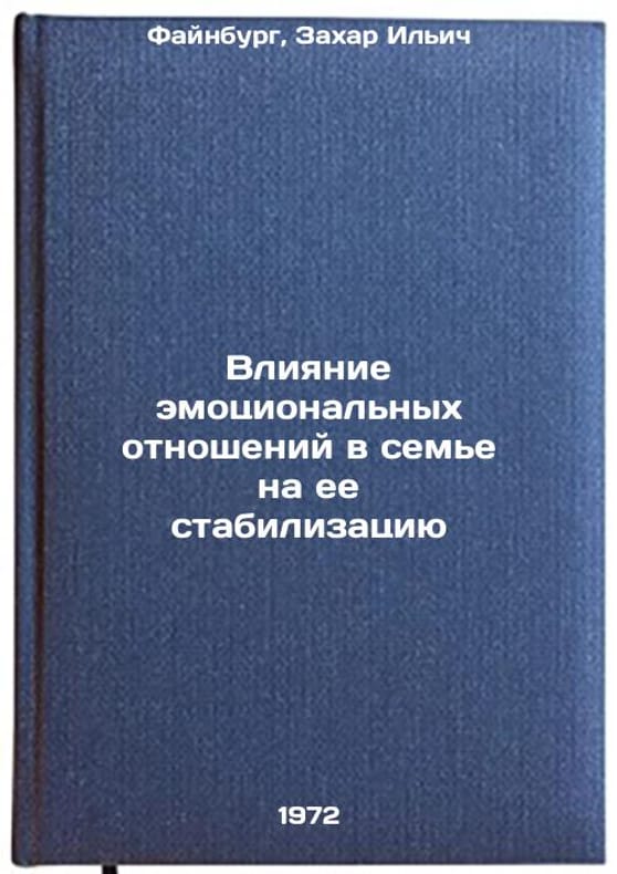 In Russian. Feinburg, Zakhar Ilyich. The Impact of Emotional Relations in a Family on its Stabilization. Moscow: 1972. Vliyanie emotsionalnykh otnosheniy v seme na ee stabilizatsiyu. In Russian/Influence of emotional relationships in the family on its stabilization. All images are for identification of editions only. Several books of the same edition may be available. Please feel free to request photos of available books. SKU7059257
