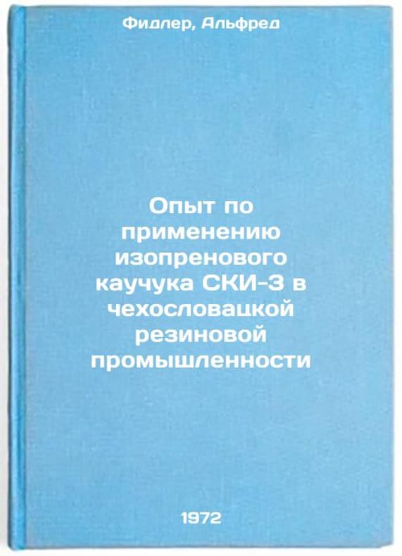 In Russian. Fidler, Alfred. Experience in the Application of Isoprene Rubber SKI-3 in the Czechoslovak Rubber Industry. Moscow: 1972. Opyt po primeneniyu izoprenovogo kauchuka SKI-3 v chekhoslovatskoy rezinovoy promyshlennosti. In Russian/Experience with the use of SKI-3 isoprene rubber in the Czechoslovak rubber industry. All images are for identification of editions only. Several books of the same edition may be available. Please feel free to request photos of available books. SKU7060629