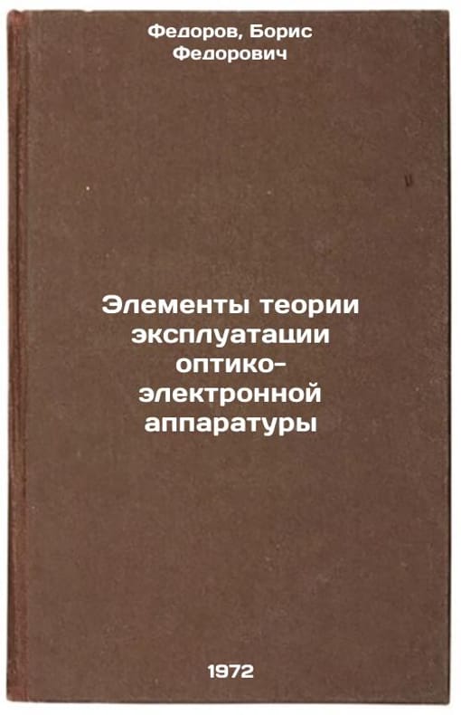 In Russian. Fedorov, Boris Fedorovich. Elements of the theory of operation of optical-electronic equipment. Moscow: USSR Defense Ministry, 1972. Elementy teorii ekspluatatsii optiko-elektronnoy apparatury. In Russian/Elements of Optical-Electronic Operation Theory. All images are for identification of editions only. Several books of the same edition may be available. Please feel free to request photos of available books. SKU7060728