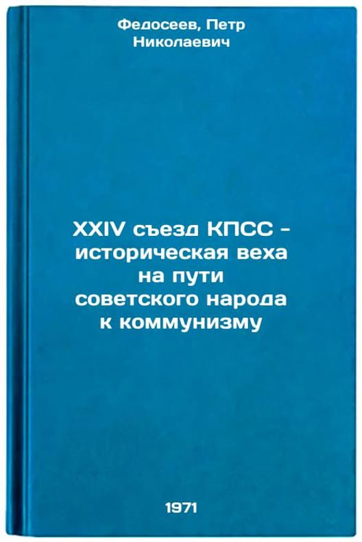 In Russian. Fedoseev, Petr Nikolaevich. The 24th Congress of the CPSU is a historic milestone on the Soviet people's road to communism. Moscow: Znanie, 1971. XXIV sezd KPSS - istoricheskaya vekha na puti sovetskogo naroda k kommunizmu. In Russian /The 24th Congress of the CPSU is a historic milestone on the Soviet people's road to communism . All images are for identification of editions only. Several books of the same edition may be available. Please feel free to request photos of available books. SKU7061359