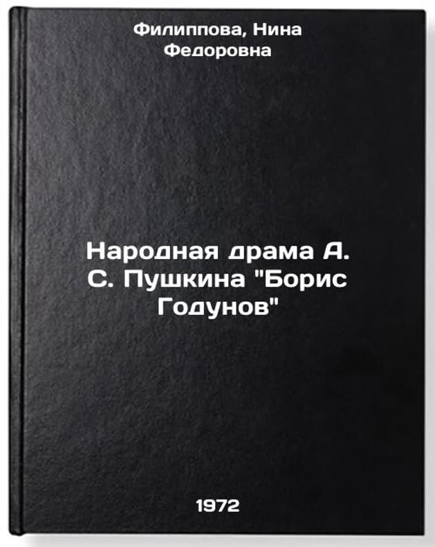 In Russian. Filippova, Nina Fedorovna. Pushkins folk drama Boris Godunov. Moscow: Book, 1972. Narodnaya drama A. S. Pushkina Boris Godunov. In Russian/A. S. Pushkins Folk Drama Boris Godunov. All images are for identification of editions only. Several books of the same edition may be available. Please feel free to request photos of available books. SKU7063647