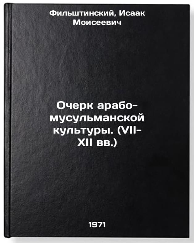 In Russian. Filshtinsky, Isaac Moiseevich. Essay on Arab-Muslim Culture. (7th-12th centuries). Moscow: Science, 1971. Ocherk arabo-musul'manskoy kul'tury. (VII-XII vv.). In Russian /An Essay on Arab-Muslim Culture (7th-12th Centuries) . All images are for identification of editions only. Several books of the same edition may be available. Please feel free to request photos of available books. SKU7063902