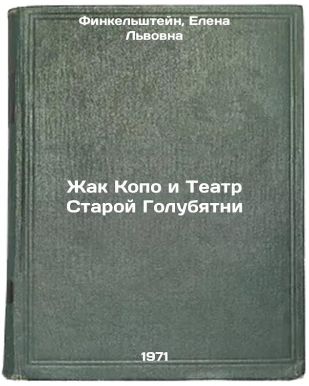 In Russian. Finkelstein, Elena Lvovna. Jacques Kopo and the Old Dove Theatre. Leningrad: Art. Leningrad Branch, 1971. Zhak Kopo i Teatr Staroy Golubyatni. In Russian /Jacques Kopo and the Old Dove Theatre . All images are for identification of editions only. Several books of the same edition may be available. Please feel free to request photos of available books. SKU7064022