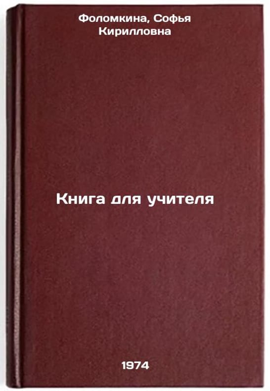 In Russian. Folomkina, Sofya Kirillovna. A book for a teacher. Moscow: Enlightenment, 1974. All images are for identification of editions only. Several books of the same edition may be available. Please feel free to request photos of available books. SKU7064702