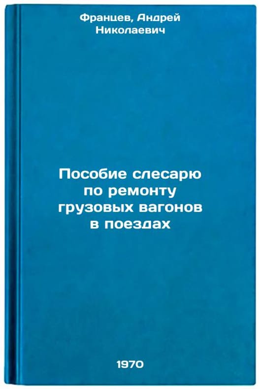 In Russian. Frantsev, Andrey Nikolaevich. Handbook for a locksmith to repair freight cars on trains. Moscow: Transport, 1970. Posobie slesaryu po remontu gruzovykh vagonov v poezdakh. In Russian /Handbook for maintenance of freight wagons on trains . All images are for identification of editions only. Several books of the same edition may be available. Please feel free to request photos of available books. SKU7065603