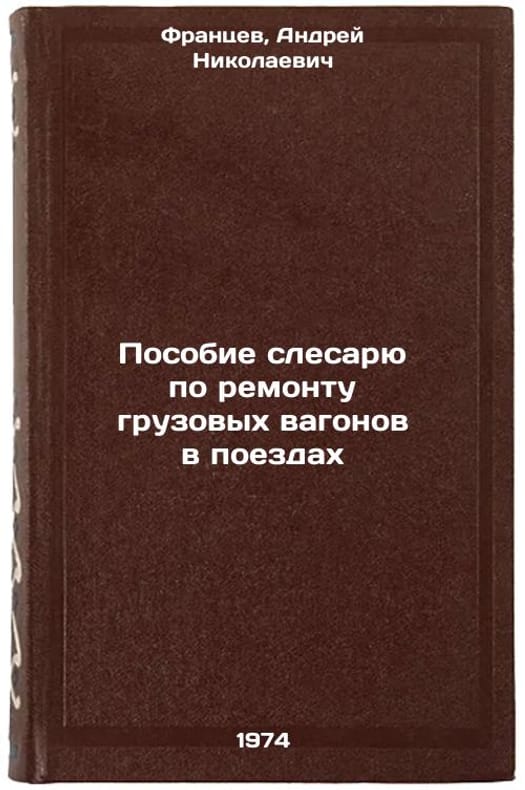 In Russian. Frantsev, Andrey Nikolaevich. Handbook for a locksmith to repair freight cars on trains. Moscow: Transport, 1974. Posobie slesaryu po remontu gruzovykh vagonov v poezdakh. In Russian /Handbook for maintenance of freight wagons on trains. All images are for identification of editions only. Several books of the same edition may be available. Please feel free to request photos of available books. SKU7065604