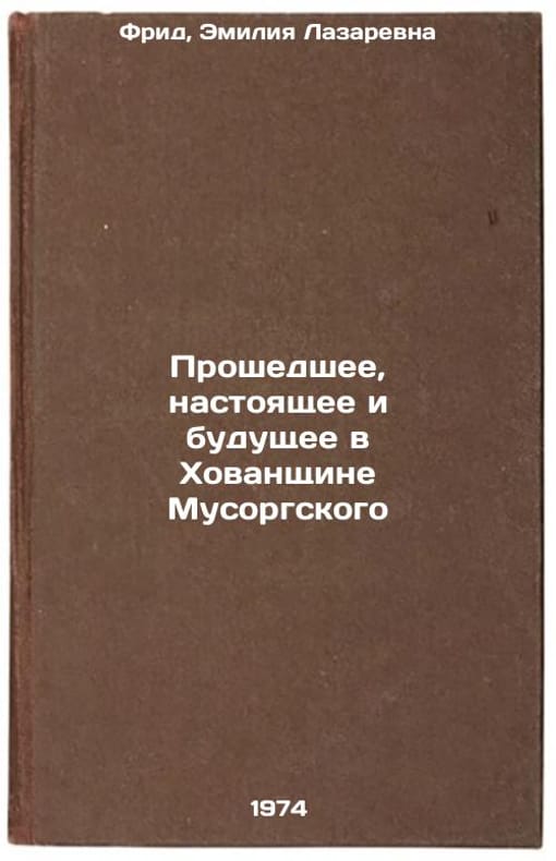 In Russian. Fried, Emilia Lazarevna. Past, Present, and Future in Musorgsky's Khovanshchina. Leningrad: Music. Leningrad Branch, 1974. Proshedshee, nastoyashchee i budushchee v Khovanshchine Musorgskogo. In Russian /Past, Present, and Future in Musorgsky's Khovanshchina. All images are for identification of editions only. Several books of the same edition may be available. Please feel free to request photos of available books. SKU7065846