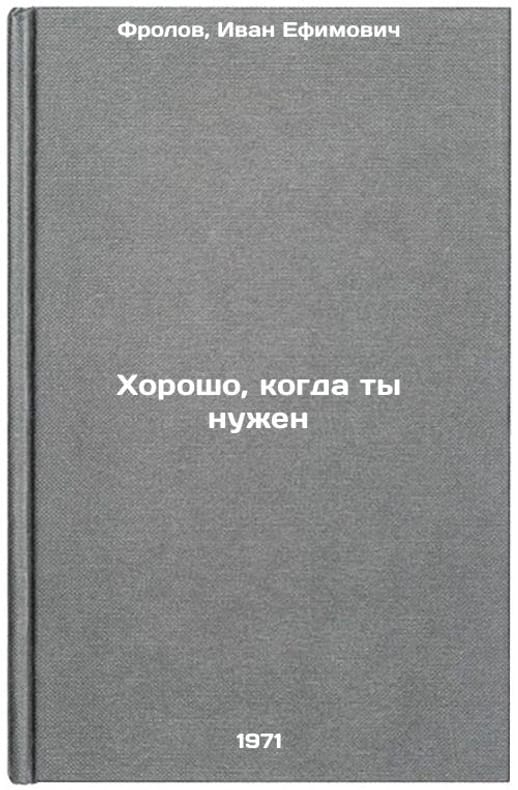 In Russian. Frolov, Ivan Efimovich. It is good when you are needed. Barnaul: Alt. book-edition, 1971. All images are for identification of editions only. Several books of the same edition may be available. Please feel free to request photos of available books. SKU7066175