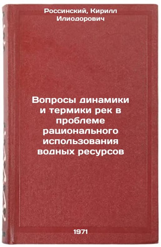 In Russian. Rossinsky, Kirill Iliodorovich. Issues of River Dynamics and Thermics in the Problem of Rational Use of Water Resources. Moscow: 1971. Voprosy dinamiki i termiki rek v probleme ratsional'nogo ispol'zovaniya vodnykh resursov. In Russian /River dynamics and thermals in water resource management . All images are for identification of editions only. Several books of the same edition may be available. Please feel free to request photos of available books. SKU7067427