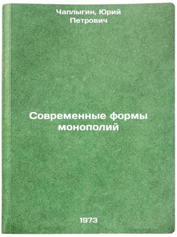 In Russian. Chaplygin, Yuri Petrovich. Modern Forms of Monopolies. Moscow: 1973. All images are for identification of editions only. Several books of the same edition may be available. Please feel free to request photos of available books. SKU7067652