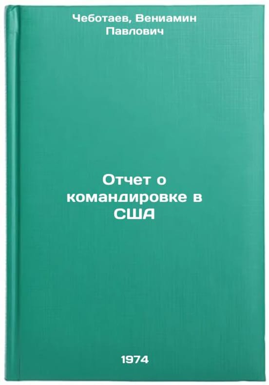 In Russian. Chebotaev, Veniamin Pavlovich. Report on a mission to the USA. Moscow: 1974. Otchet o komandirovke v SShA. In Russian /Report on a mission to the United States. All images are for identification of editions only. Several books of the same edition may be available. Please feel free to request photos of available books. SKU7068111