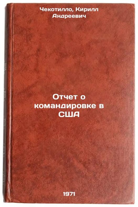 In Russian. Chekotillo, Kirill Andreevich. Report on a mission to the USA. Moscow: 1971. Otchet o komandirovke v SShA. In Russian /Report on a mission to the United States . All images are for identification of editions only. Several books of the same edition may be available. Please feel free to request photos of available books. SKU7068363