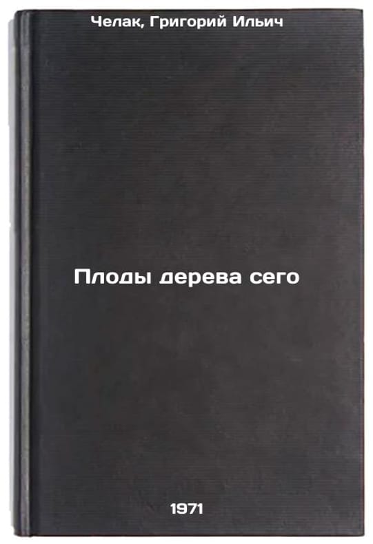 In Russian. Chelak, Grigory Ilyich. The fruit of this tree. Chisinau: Map of Moldoveniasca, 1971. All images are for identification of editions only. Several books of the same edition may be available. Please feel free to request photos of available books.SKU7068409