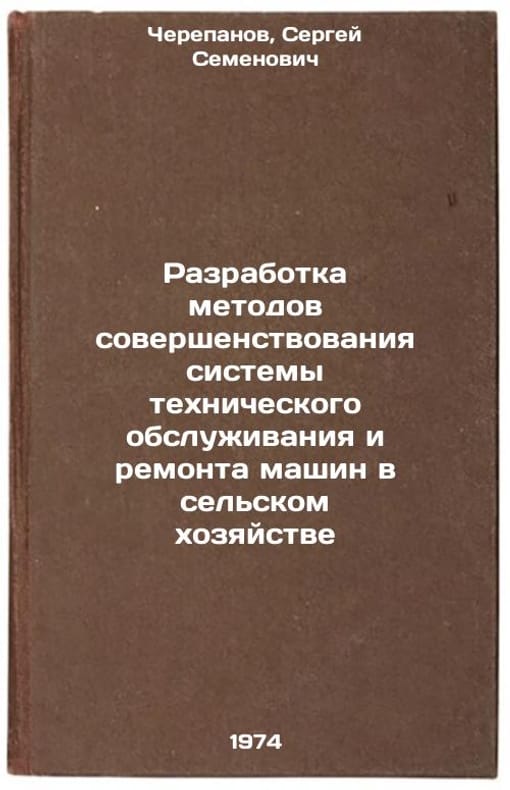 In Russian. Cherepanov, Sergey Semenovich. Development of Methods for Improving the System of Maintenance and Repair of Machines in Agriculture. Moscow: 1974. Razrabotka metodov sovershenstvovaniya sistemy tekhnicheskogo obsluzhivaniya i remonta mashin v sel'skom khozyaystve. In Russian /Development of Methods for Improving the Maintenance and Repair of Machinery in Agriculture. All images are for identification of editions only. Several books of the same edition may be available. Please feel free to request photos of available books. SKU7069270