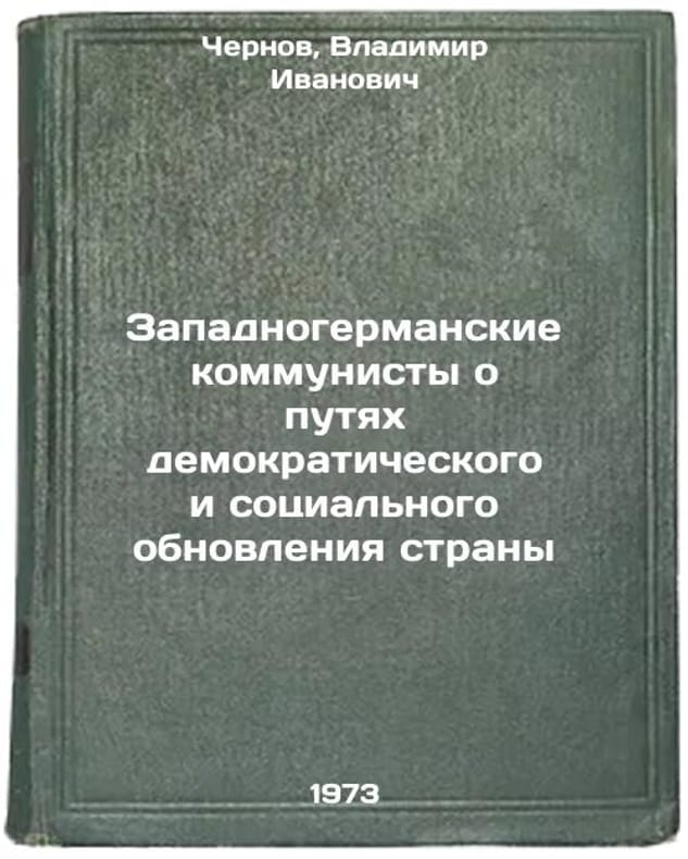 In Russian. Chernov, Vladimir Ivanovich. West German Communists on the Ways of Democratic and Social Renewal of the Country. Saratov: Publishing House of Saratov, 1973. Zapadnogermanskie kommunisty o putyakh demokraticheskogo i sotsialnogo obnovleniya strany. In Russian/West German Communists on the Ways of Democratic and Social Renewal. All images are for identification of editions only. Several books of the same edition may be available. Please feel free to request photos of available books. SKU7070815