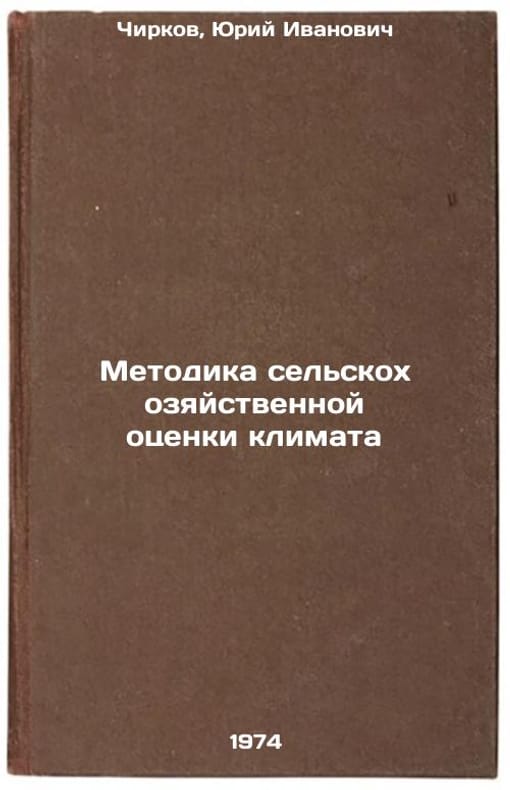 In Russian. Chirkov, Yuri Ivanovich. Methodology of Agricultural Climate Assessment. Moscow: 1974. Metodika sel'skokhozyaystvennoy otsenki klimata. In Russian /Methodology for agricultural climate assessment. All images are for identification of editions only. Several books of the same edition may be available. Please feel free to request photos of available books. SKU7072375