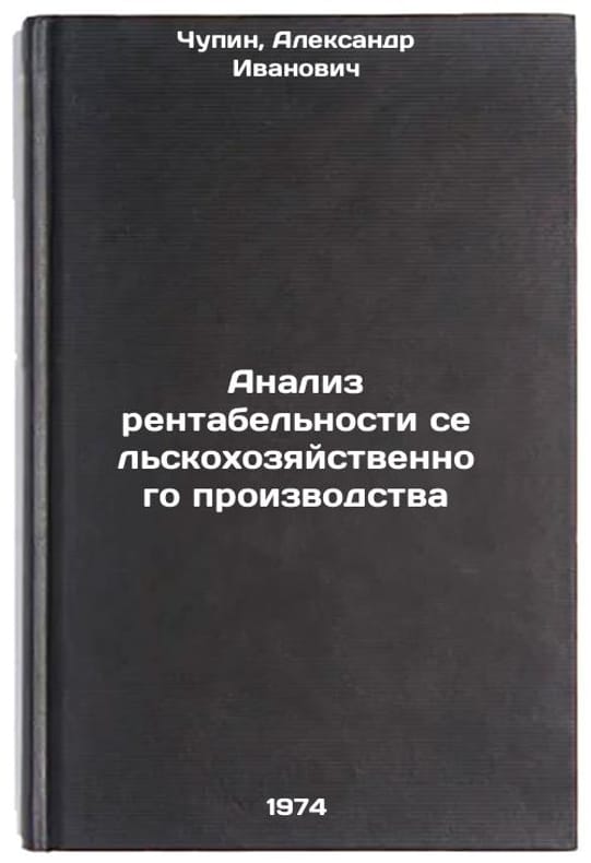 In Russian. Chupin, Alexander Ivanovich. Analysis of Profitability of Agricultural Production. Omsk: 1974. Analiz rentabel'nosti sel'skokhozyaystvennogo proizvodstva. In Russian /Agricultural Profitability Analysis. All images are for identification of editions only. Several books of the same edition may be available. Please feel free to request photos of available books. SKU7072588