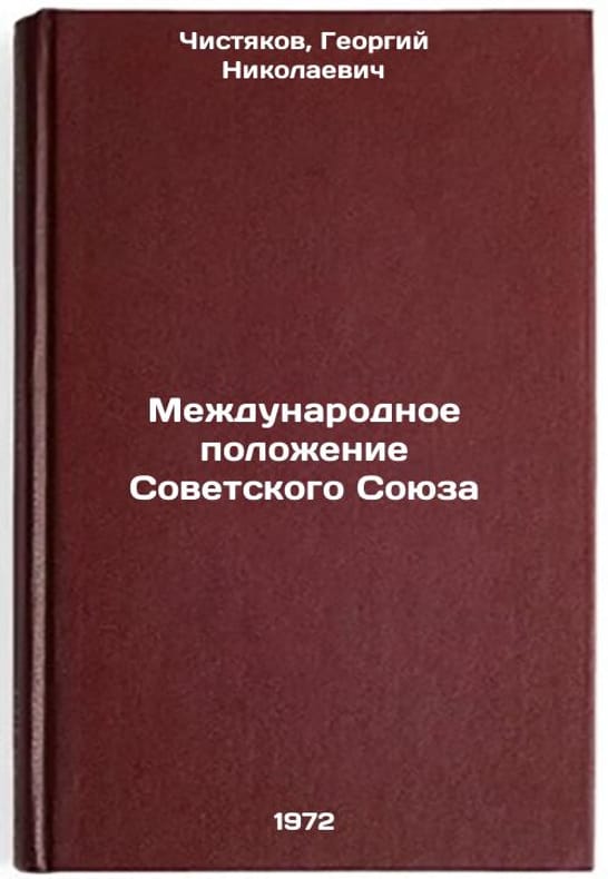 In Russian. Chistyakov, Georgy Nikolaevich. The International Position of the Soviet Union. Moscow: 1972. Mezhdunarodnoe polozhenie Sovetskogo Soyuza. In Russian/The International Situation of the Soviet Union. All images are for identification of editions only. Several books of the same edition may be available. Please feel free to request photos of available books. SKU7072774