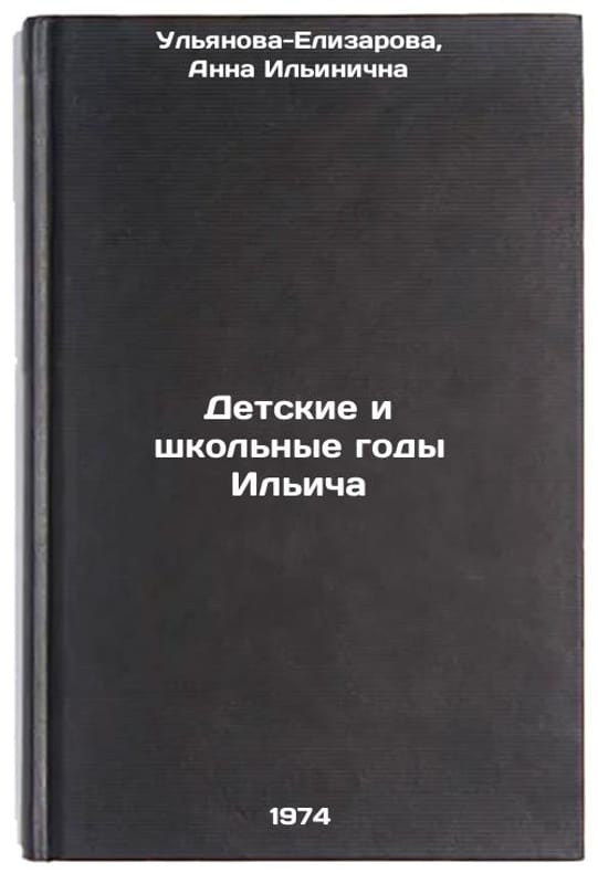 In Russian. Ulyanova-Elizarova, Anna Ilyinichna. Ilyich's childhood and school years. Baku: Ma'arif,. Detskie i shkol'nye gody Il'icha. In Russian /Ilyich's Childhood and School Years . All images are for identification of editions only. Several books of the same edition may be available. Please feel free to request photos of available books. SKU1025084