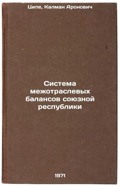 In Russian. Tsipe, Kalman Aronovich. The System of Intersectoral Balances of the Union Republic. Moscow: Economics, 1971. Sistema mezhotraslevykh balansov soyuznoy respubliki. In Russian /System of cross-sectoral balances of the Union Republic . All images are for identification of editions only. Several books of the same edition may be available. Please feel free to request photos of available books. SKU7082290