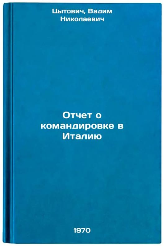 In Russian. Tsytovich, Vadim Nikolaevich. Report on mission to Italy. Moscow: VINITI, 1970. All images are for identification of editions only. Several books of the same edition may be available. Please feel free to request photos of available books. SKU7082678