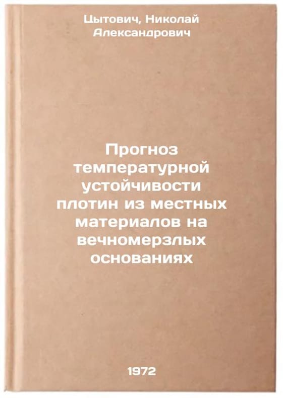 In Russian. Tsytovich, Nikolai Aleksandrovich. Forecast of temperature stability of dams from local materials on permafrost grounds. Leningrad: Stroyizdat. Leningrad detachment, 1972. Prognoz temperaturnoy ustoychivosti plotin iz mestnykh materialov na vechnomerzlykh osnovaniyakh. In Russian/Temperature stability forecast for dams made from local materials on permafrost bases. All images are for identification of editions only. Several books of the same edition may be available. Please feel free to request photos of available books. SKU7082700