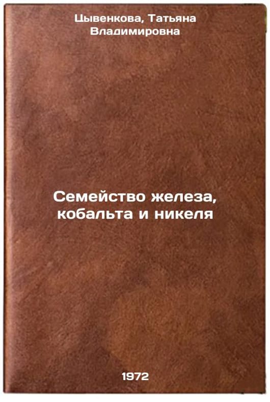 In Russian. Tsyvenkova, Tatiana Vladimirovna. Iron, cobalt and nickel family. Rostov n / a: 1972. All images are for identification of editions only. Several books of the same edition may be available. Please feel free to request photos of available books. SKU7082906