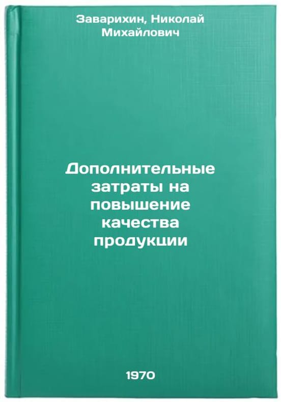In Russian. Zavarikhin, Nikolai Mikhailovich. Additional Costs for Improving the Quality of Products. Moscow: Comments on Standards, Measures, and Measurement Devices: Publishing House of Standards, 1970. Dopolnitel'nye zatraty na povyshenie kachestva produktsii. In Russian /Additional Costs of Quality Improvement . All images are for identification of editions only. Several books of the same edition may be available. Please feel free to request photos of available books. SKU7083636