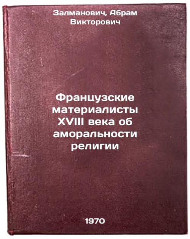 In Russian. Zalmanovich, Abram Viktorovich. eighteenth-century French materialists on the immorality of religion. Thula: 1970. Frantsuzskie materialisty XVIII veka ob amoral'nosti religii. In Russian /eighteenth-century French materialists on the immorality of religion . All images are for identification of editions only. Several books of the same edition may be available. Please feel free to request photos of available books. SKU7083985