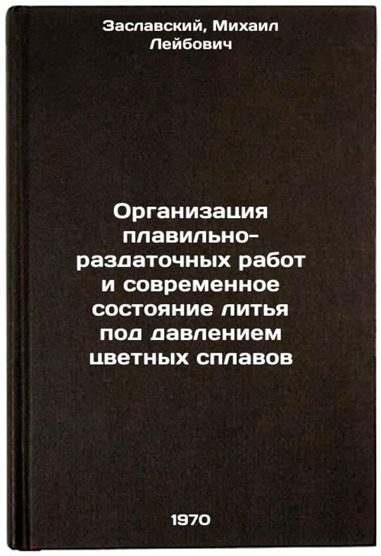 In Russian. Zaslavsky, Mikhail Leibovich. Organization of smelting and distribution works and the modern state of casting under pressure of non-ferrous alloys. Moscow: Machine Building, 1970. Organizatsiya plavil'no-razdatochnykh rabot i sovremennoe sostoyanie lit'ya pod davleniem tsvetnykh splavov. In Russian /Organization of smelting and distribution operations and the current state of casting under pressure of non-ferrous alloys . All images are for identification of editions only. Several books of the same edition may be available. Please feel free to request photos of available books. SKU7084356