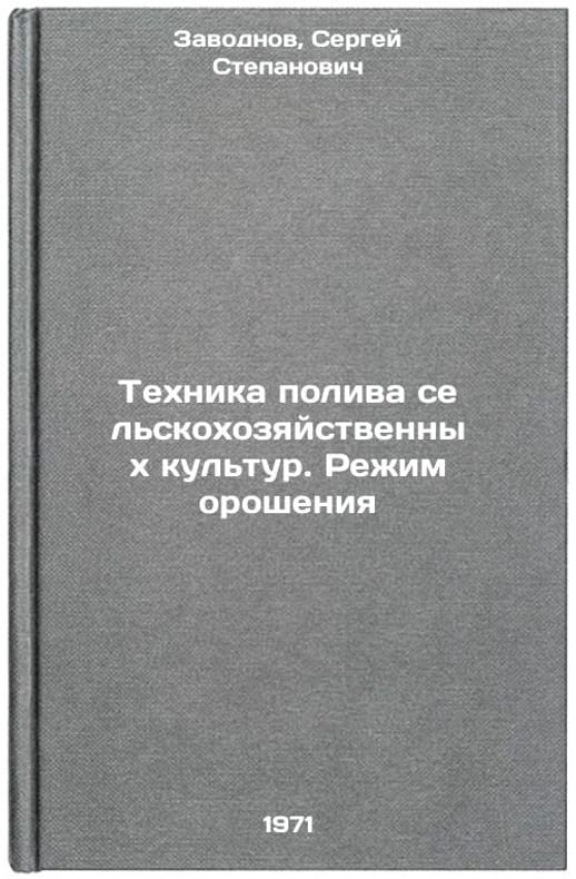 In Russian. Zavodnov, Sergey Stepanovich. Crop irrigation technique. Irrigation regime. Chisinau: 1971. All images are for identification of editions only. Several books of the same edition may be available. Please feel free to request photos of available books.SKU7084463