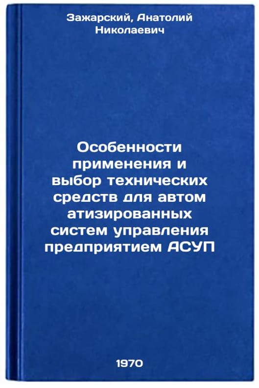 In Russian. Zazharsky, Anatoly Nikolaevich. Peculiarities of Application and Selection of Technical Facilities for Automated Control Systems of the ASUP Enterprise. Moscow: Center for Scientific and Research of Information and Technological and Economic Research on Instrumentation, Automation Facilities and Control Systems, 1970. Osobennosti primeneniya i vybor tekhnicheskikh sredstv dlya avtomatizirovannykh sistem upravleniya predpriyatiem ASUP. In Russian /Features of Application and Selection of Technical Tools for Automated Enterprise Control Systems . All images are for identification of editions only. Several books of the same edition may be available. Please feel free to request photos of available books. SKU7084956