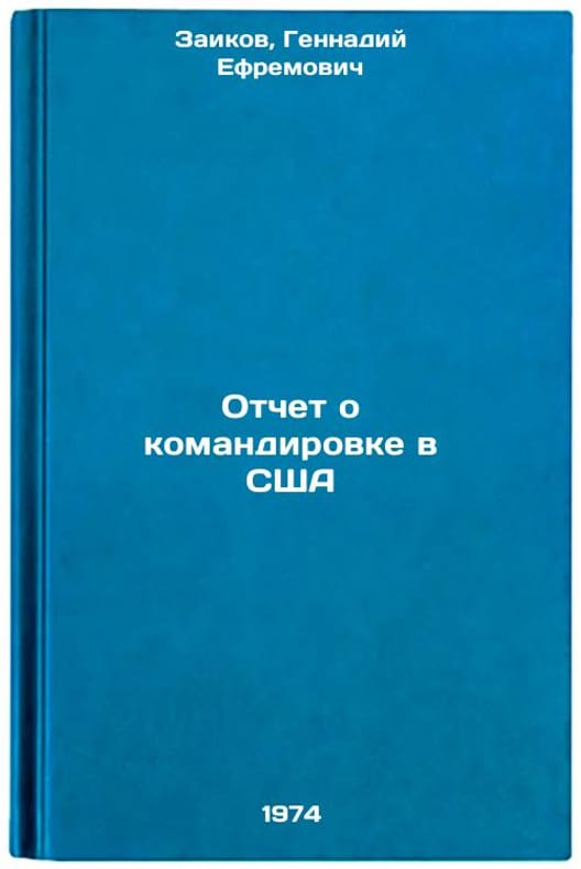 In Russian. Zaikov, Gennady Efremovich. Report on a mission to the USA. Moscow: 1974. Otchet o komandirovke v SShA. In Russian /Report on a mission to the United States. All images are for identification of editions only. Several books of the same edition may be available. Please feel free to request photos of available books. SKU7085063