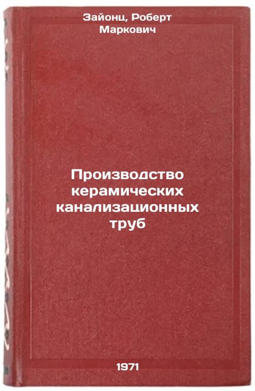 In Russian. Zajonc, Robert Markovich. Production of ceramic sewage pipes. Moscow: Stroyizdat, 1971. Proizvodstvo keramicheskikh kanalizatsionnykh trub. In Russian /Production of ceramic sewage pipes . All images are for identification of editions only. Several books of the same edition may be available. Please feel free to request photos of available books. SKU7085483