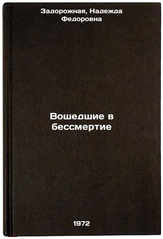 In Russian. Zadorozhnaya, Nadezhda Fedorovna. Entered immortality. Simferopol: Tavria, 1972. All images are for identification of editions only. Several books of the same edition may be available. Please feel free to request photos of available books. SKU7086689