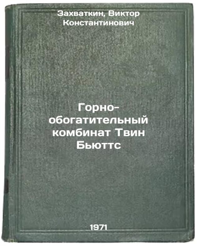 In Russian. Zakhvatkin, Viktor Konstantinovich. Twin Butts Mining and Processing Plant. Moscow: 1971. Gorno-obogatitel'nyy kombinat Tvin B'yutts. In Russian /Twin Butts Mining and Processing Plant . All images are for identification of editions only. Several books of the same edition may be available. Please feel free to request photos of available books. SKU7088291