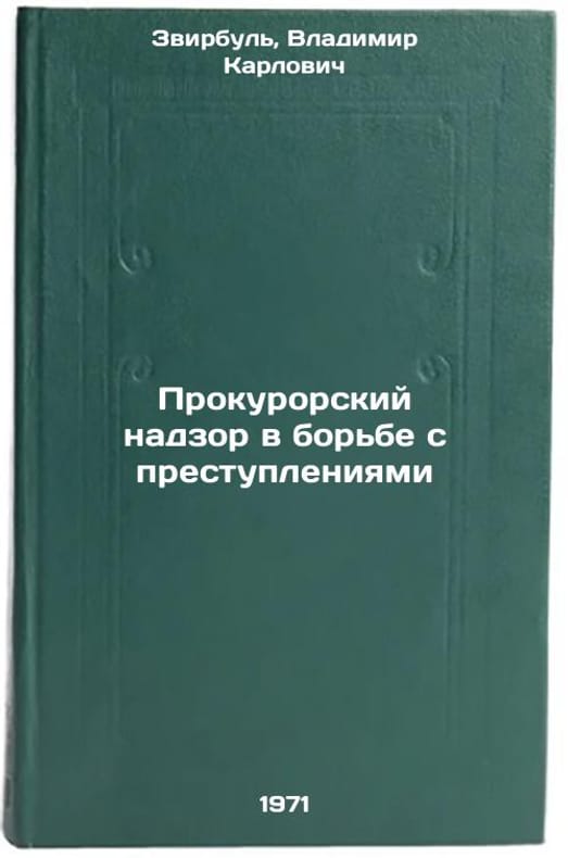 In Russian. Zvirbul, Vladimir Karlovich. Prosecutor's supervision in combating crimes. Moscow: 1971. Prokurorskiy nadzor v bor'be s prestupleniyami. In Russian /Prosecution oversight in the fight against crime . All images are for identification of editions only. Several books of the same edition may be available. Please feel free to request photos of available books. SKU7088864