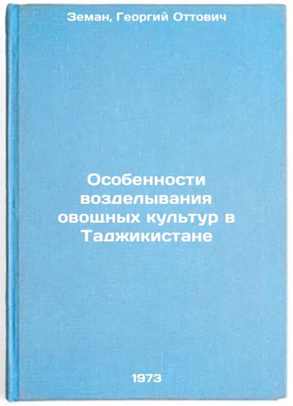 "Short description: In Russian. Zeman, Georgy Ottovich. Peculiarities of vegetable crop cultivation in Tajikistan. Dushanbe: Tajik INTI, 1973. Osobennosti vozdelyvaniya ovoshchnykh kultur v Tadzhikistane. In Russian/Features of vegetable crop cultivation in Tajikistan. All images are for identification of editions only. Several books of the same edition may be available. Please feel free to request photos of available books. SKU7089266"