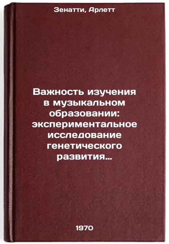 In Russian. Zenatti, Arlette. The Importance of Study in Music Education: An Experimental Study of the Genetic Development of Music Perception. Moscow: 1970. Vazhnost' izucheniya v muzykal'nom obrazovanii: eksperimental'noe issledovanie geneticheskogo razvitiya muzykal'nogo vospriyatiya. In Russian /The Importance of Music Education: An Experimental Study of the Genetic Development of Music Perception . All images are for identification of editions only. Several books of the same edition may be available. Please feel free to request photos of available books. SKU7089428