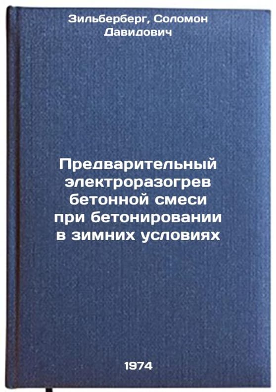 In Russian. Zilberberg, Solomon Davidovich. Preheating of concrete mixture during concreting in winter conditions. Moscow: Stroyizdat, 1974. Predvaritel'nyy elektrorazogrev betonnoy smesi pri betonirovanii v zimnikh usloviyakh. In Russian /Pre-heating of the concrete mixture when concreting in winter conditions. All images are for identification of editions only. Several books of the same edition may be available. Please feel free to request photos of available books. SKU7089768