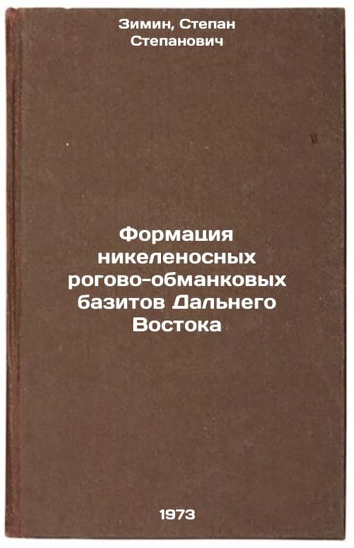 In Russian. Zimin, Stepan Stepanovich. Formation of nickel-bearing horn and deception bases in the Far East. Novosibirsk: Science. Siberian Branch, 1973. Formatsiya nikelenosnykh rogovo-obmankovykh bazitov Dalnego Vostoka. In Russian/Formation of nickel-bearing horn-deceiving bases of the Far East. All images are for identification of editions only. Several books of the same edition may be available. Please feel free to request photos of available books. SKU7089929