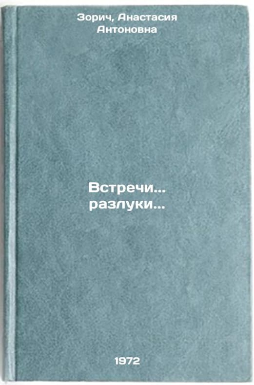 In Russian. Zorich, Anastasia Antonovna. Meetings. separations. Odessa: Mayak, 1972. All images are for identification of editions only. Several books of the same edition may be available. Please feel free to request photos of available books. SKU7091172