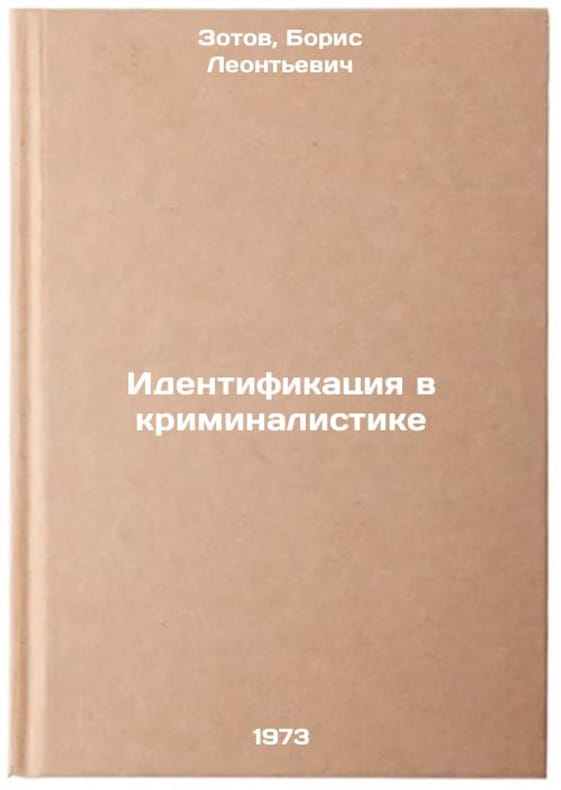 In Russian. Zotov, Boris Leontievich. Identification in forensics. Moscow: 1973. All images are for identification of editions only. Several books of the same edition may be available. Please feel free to request photos of available books. SKU7091261